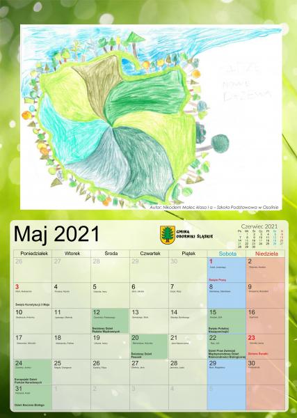 Dla osób, które jeszcze nie posiadają kalendarza na 2021 rok, Gmina Oborniki Śląskie ma do przekazania kalendarz ścienny, który zawiera działania na rzecz ochrony powietrza. W kalendarzu znajdują się prace uczniów szkół podstawowych z terenu Gminy Oborniki Śląskie, które zostały wykonane w ramach projektu "Ku poprawie jakości powietrza" dofinansowanym przez WFOŚiGW we Wrocławiu. W projekcie tym szczególną uwagę zwrócono na problem zanieczyszczeń powietrza i możliwości poprawy jakości powietrza w naszym otoczeniu. Oprócz pięknych prac w kalendarzu zostały zaznaczone najważniejsze wydarzenia związane z ochrona przyrody i środowiska. Osoby zainteresowane kalendarzem zapraszamy do Urzędu Miejskiego w Obornikach Śląskich, w godzinach pracy od poniedziałku do piątku od godz. 7.30 do 15.30, po wcześniejszym zgłoszeniu takiego zamiaru telefonicznie na numer 71 310 35 19 wew. 434.