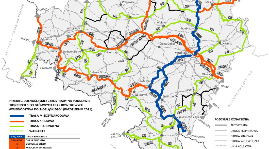 W dniu 19 października Zarządu Województwa Dolnośląskiego przyjął dokument pt. Koncepcja sieci głównych tras rowerowych w województwie dolnośląskim – DOLNOŚLĄSKA CYKLOSTRADA. Burmistrz Gminy Arkadiusz Poprawa brał udział w konsultacjach tego dokumentu. Na naszym terenie przebiegnie ona po trasie VIA REGIA – przez Port Uraz, Raków, Kotowice i Paniowice. Dolnośląska Cyklostrada wskazuje docelowy przebieg tras głównych i będzie podstawą do realizacji strategicznego projektu województwa. Za jego koordynację i wdrożenie odpowiedzialny jest Samorząd Województwa Dolnośląskiego. Przy realizacji inwestycji będą współpracować również lokalne samorządy oraz zarządcy poszczególnych terenów. Dolnośląska Cyklostrada, o łącznej długości 2284 km, to 11 długodystansowych rowerowych tras głównych (2007 km, bez wariantów i odcinków dublujących) oraz 277 km tras prowadzonych po nieczynnych liniach kolejowych (trasy „kolej na rowery”).