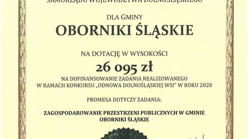 We wtorek 4 sierpnia podpisana została umowa na realizację projektu pn. "Zagospodarowanie przestrzeni publicznych w Gminie Oborniki Śląskie". Dzięki pozyskanym środkom w miejscowościach: Raków, Jary, Morzęcin Mały, Wielka Lipa oraz Osolin doposażone zostaną place zabaw. Wartość projektu to 60 000 zł.