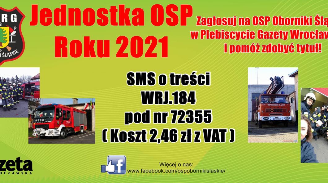 Jednostka OSP Oborniki Śląskie została zgłoszona do Plebiscytu Gazety Wrocławskiej "Najlepsza Jednostka OSP Roku". Jednostka zdobyła tytuł najlepszej jednostki Powiatu w ubiegłym plebiscycie. Głosowanie trwa do piątku 20 sierpnia 2021 r. do godz. 21.30. Etap wojewódzki rozpocznie się następnego dnia. Więcej na oficjalnej stronie Gazety Wrocławskiej.