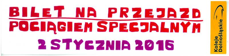 w związku z organizacją dodatkowego przejazdu mikołajkowego pociągu Kolei Dolnośląskich, informujemy iż przejazd odbędzie się 2.01. 2016 roku i będzie biletowany. Darmowe bilety będą dostępne we wszystkich przedszkolach na terenie Gminy Oborniki Śląskie. Bilety na przejazd zostaną rozdysponowane proporcjonalnie do liczby dzieci w poszczególnych przedszkolach. Dodatkowe cztery podwójne bilety dla dzieci w wieku przedszkolnym, nieuczęszczających do przedszkola dostępne będą do odbioru w Urzędzie Miejskim w Obornikach Śląskich dnia 23 grudnia 2015 roku po godzinie 8.30 w Sekretariacie.