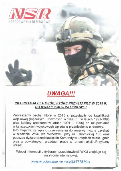 Informacja dla osób które przystąpiły w 2015 roku do kwalifikacji wojskowej
