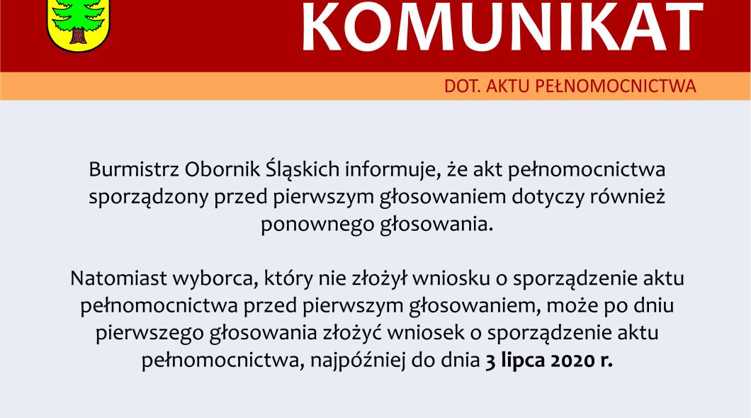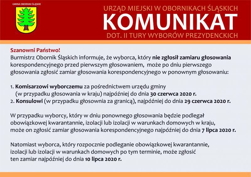 Informacja dotycząca głosowania korespondencyjnego w II turze wyborów na Prezydenta RP | Oficjalny serwis Gminy Oborniki Śląskie