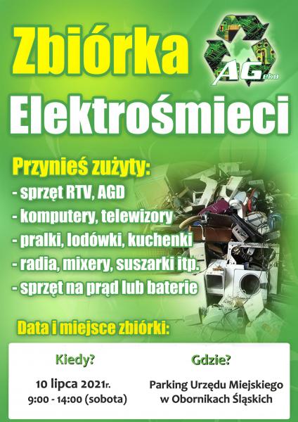 Szanowni Mieszkańcy ! Informujemy, że w dniu 10 lipca 2021r. (sobota) w godz. od 9:00 do 14:00 na terenie Obornik Śląskich zostanie przeprowadzony bezpłatny odbiór zużytego sprzętu AGD i RTV*