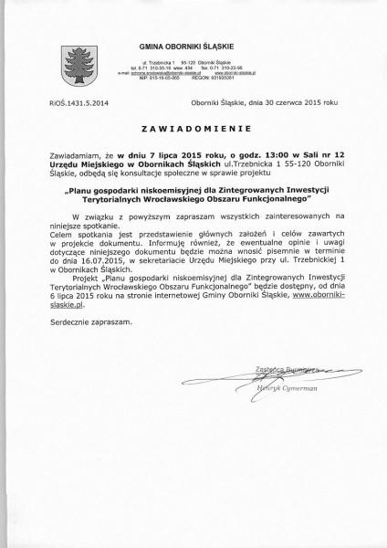 Konsultacje społeczne w sprawie projektu "Planu gospodarki niskoemisyjnej dla Zintegrowanych Inwestycji Terytorialnych Wrocławskiego Obszaru Funkcjonalnego"