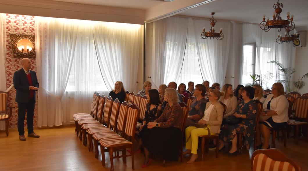 We wtorek 18.10.2022 r. u Urzędzie Stanu Cywilnego w Obornikach Śląskich odbyło się uroczyste spotkanie Burmistrza Arkadiusza Poprawy z dyrektorami i nauczycielami szkół, przedszkoli i żłobka prowadzonych przez Gminę Oborniki Śląskie. W czasie spotkania Arkadiusz Poprawa wręczył najlepszym nauczycielom i dyrektorom nagrody Burmistrza z okazji Dnia Edukacji Narodowej. Podziękował za ich ciężką i wymagającą pracę, podkreślając, że spoczywa na nich wyjątkowa odpowiedzialność za ukształtowanie przyszłych pokoleń Polaków. W trakcie uroczystości nauczyciele, którzy w tym roku uzyskali stopień nauczyciela mianowanego, otrzymali akty nadania wyższego stopnia awansu zawodowego oraz złożyli uroczyste ślubowanie, przyrzekając m. in. rzetelnie wykonywać swoje obowiązki oraz kształcić i wychowywać młode pokolenie w duchu umiłowania Ojczyzny, tradycji narodowych i poszanowania Konstytucji Rzeczypospolitej Polskiej. Po zakończeniu oficjalnej części uroczystości był czas na kuluarowe rozmowy.