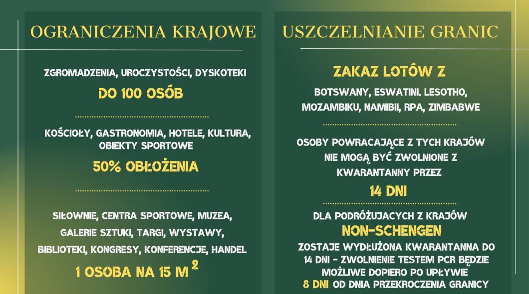 W związku z pojawieniem się nowego wariantu koronawirusa od 1 grudnia w Polsce zostaną wprowadzone nowe obostrzenia. Dotyczyć będą uszczelnienia granic oraz ograniczeń krajowych.