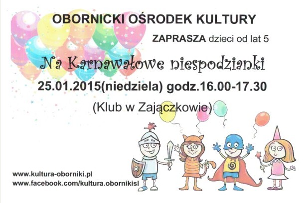Obornicki Ośrodek Kultury zaprasza na "Karnawałowe Niespodzianki"