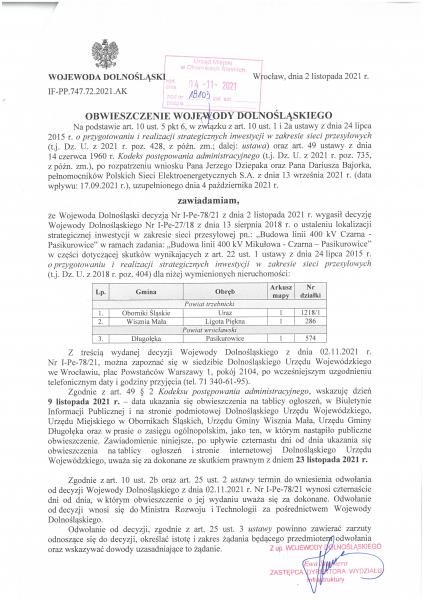 Obwieszczenie Wojewody Dolnośląskiego | Oficjalny serwis Gminy Oborniki Śląskie