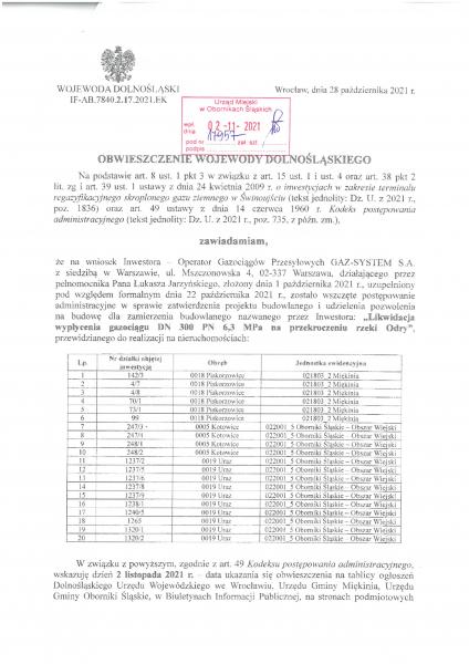 Obwieszczenie Wojewody Dolnośląskiego | Oficjalny serwis Gminy Oborniki Śląskie