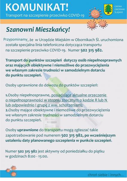 Przypominamy o infolinii dotyczącej transportu na szczepienia | Oficjalny serwis Gminy Oborniki Śląskie