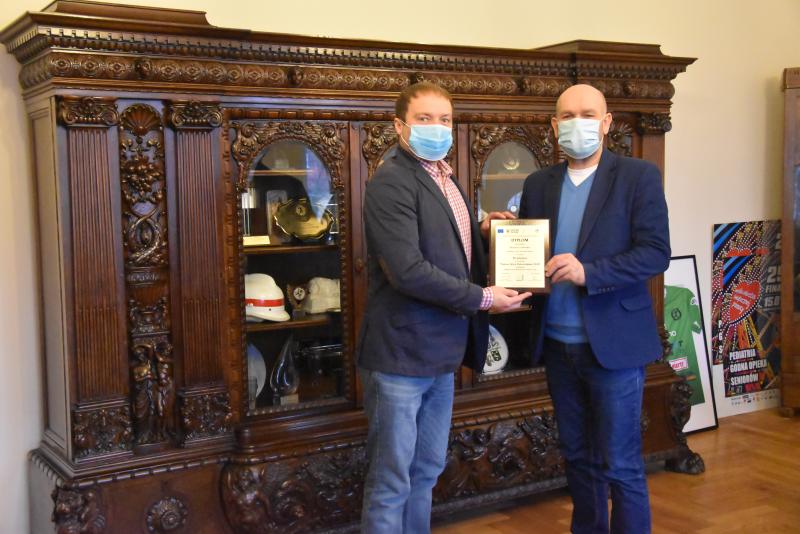 Gratulacje oraz pamiątkową statuetkę na ręce Sołtysa Dawida Stawiaka złożył Burmistrz Obornik Śląskich Arkadiusz Poprawa.