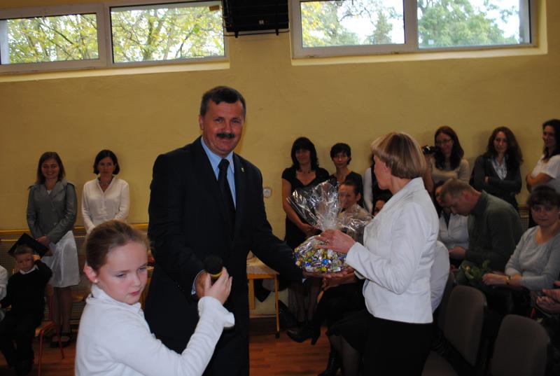 Burmistrz podziękował także obecnym na sali dyrektorom i nauczycielom z przeszkoli oraz rodzicom za przygotowanie dzieci do klasy pierwszej. Na zakończenie ślubowanie złożyli także przedstawiciele rodziców.