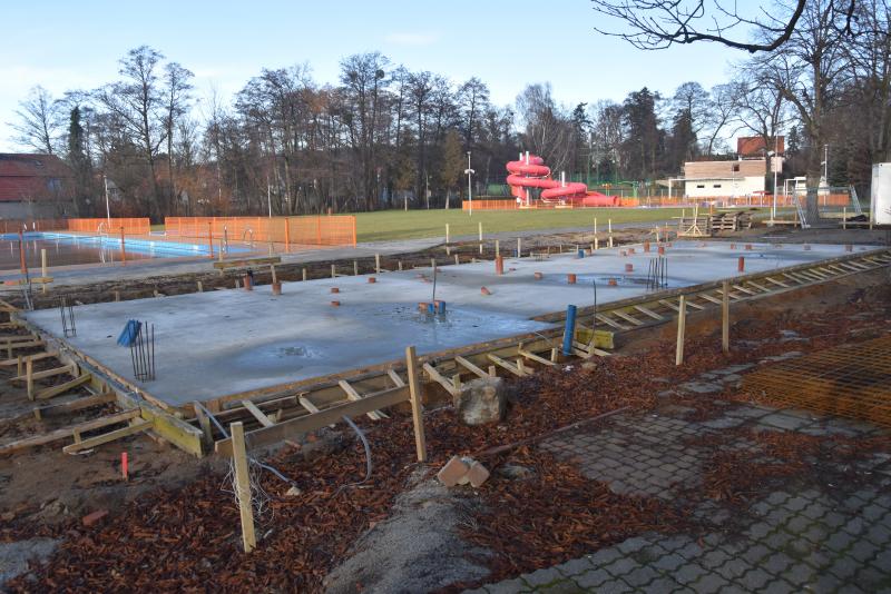 Strefa wejściowa oraz taras przy gastronomi zostaną zadaszone ażurową zabudową z desek opartych na drewnianych belkach i słupach. Zadaszenie ma pełnić funkcję ochrony przed bezpośrednim promieniowaniem słonecznym. Od strony basenu zaprojektowano kilka kabin – przebieralni, które przy okazji oddzielają część basenową od strefy wejść do sanitariatów. Gmina sfinansuje budowę ze środków własnych. Całkowita wartość inwestycji to ponad 1 500 000 zł natomiast planowane zakończenie robót to koniec kwietnia 2021 r.