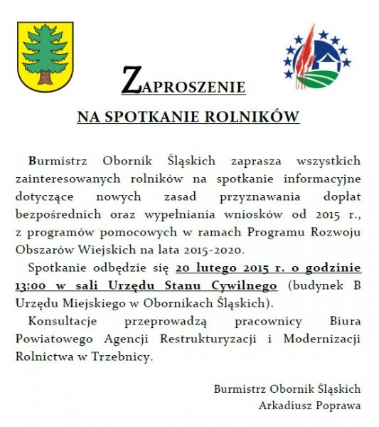 Zaproszenie na spotkanie rolników | Oficjalny serwis Gminy Oborniki Śląskie