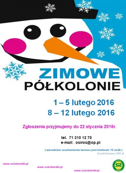 Zapraszamy na zimowe półkolonie do Ośrodka Sportu i Rekreacji w Obornikach Śląskich 30-12-2015 UdostępnijDrukujPDF