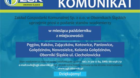 Zakład Gospodarki Komunalnej uprzejmie prosi o podanie stanu wodomierzy
