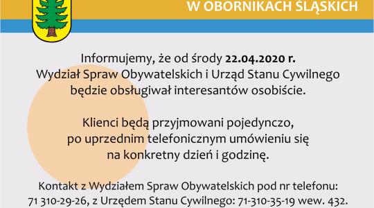 Wydział Spraw Obywatelskich i Urząd Stanu Cywilnego będzie obsługiwał interesantów osobiście