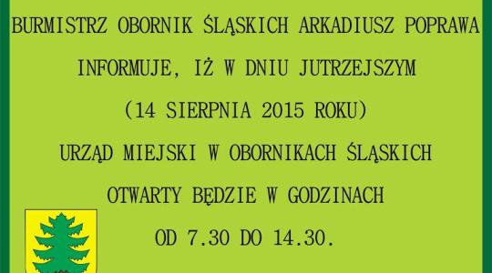 Skrócony czas Pracy Urzędu Miejskiego w Obornikach Śląskich
