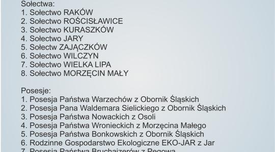 Lista zakwalifikowanych sołectw oraz posesji do konkursu "Piękne okolice w Gminie Oborniki Śląskie"