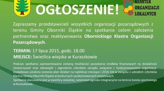 Ważna informacja dla organizacji pozarządowych z terenu Gminy Oborniki Śląskie!