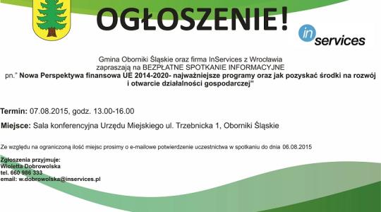 Bezpłatne spotkanie informacyjne pn."Nowa perspektywa finansowa UE 2014-2020 -najważniejsze programy oraz jak pozyskać środki na rozwój i otwarcie działalności gospodarczej"
