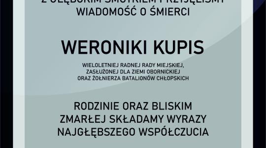 Kondolencje z powodu śmierci Weroniki Kupis