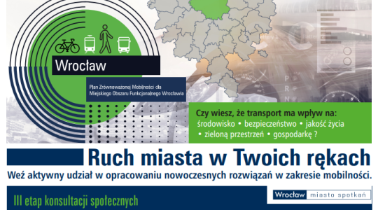 Konsultacje społeczne dotyczące opracowania „Planu Zrównoważonej Mobilności dla Miejskiego Obszaru Funkcjonalnego Wrocławia” (PZM MOFW) - Etap III
