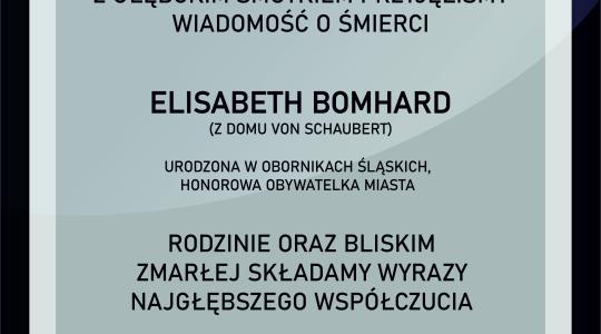 W dniu 4 września 2021 roku zmarła Elisabeth Bomhard