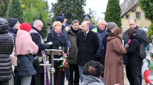 W uroczystości udział wzięli m.in. przedstawiciele rodzin pomordowanych mieszkający w gminie Oborniki Śląskie, posłanka na Sejm Mirosława Stachowiak-Różecka, burmistrz Obornik Śląskich Arkadiusz Poprawa, dyrektor wrocławskiego Oddziału IPN dr hab. Kamil Dworaczek, radni, duchowieństwo, uczniowie ze Szkoły Podstawowej nr 2 w Obornikach Śląskich oraz mundurowi.