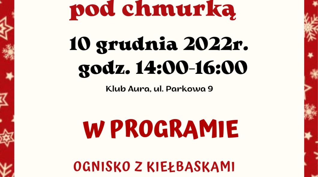 W najbliższą sobotę 10 grudnia 2022 Święty Mikołaj odwiedzi dzieci w naszym mieście. Spotkanie ze Świętym Mikołajem na którym nie zabraknie zabaw dla dzieci, ogniska z kiełbaskami i drobnych upominków odbędzie się w Klubie Aura przy ulicy Parkowej 9 w godzinach 14:00-16:00
