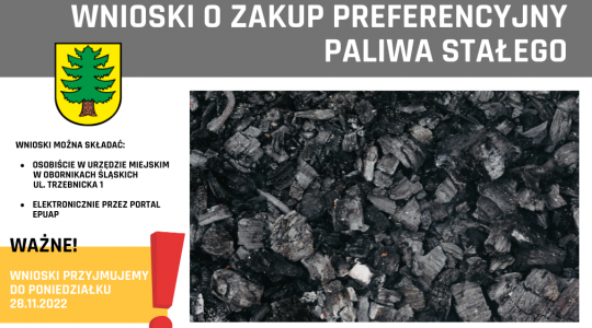 Składanie wniosków o preferencyjny zakup paliwa stałego